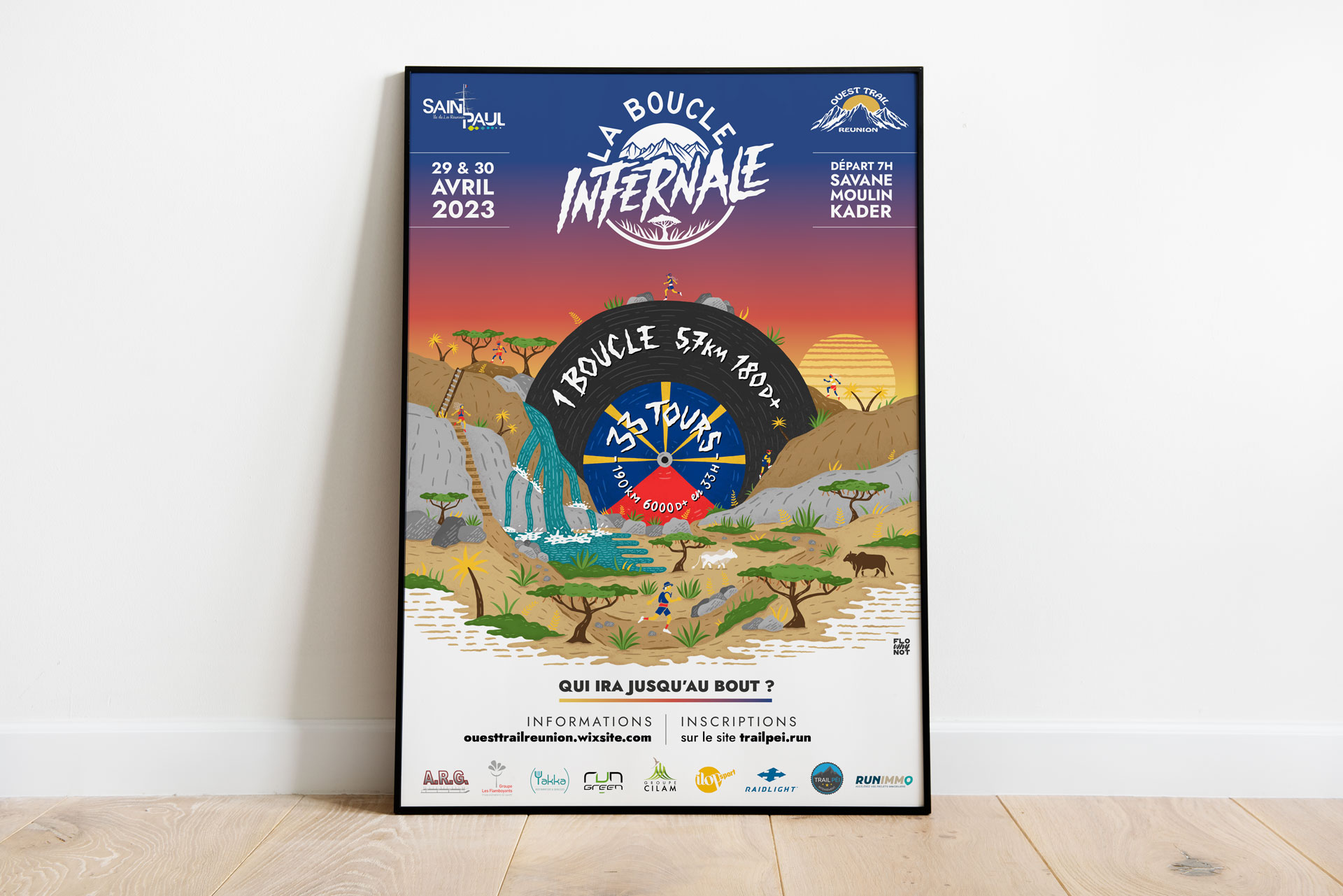 Ouest Trail Réunion m'a fait confiance afin de réaliser l'identité visuelle de sa nouvelle course de trail à La Réunion : La Boucle Infernale. Le projet se compose d'un logo et d'une affiche symbolisant l'édition 2023.