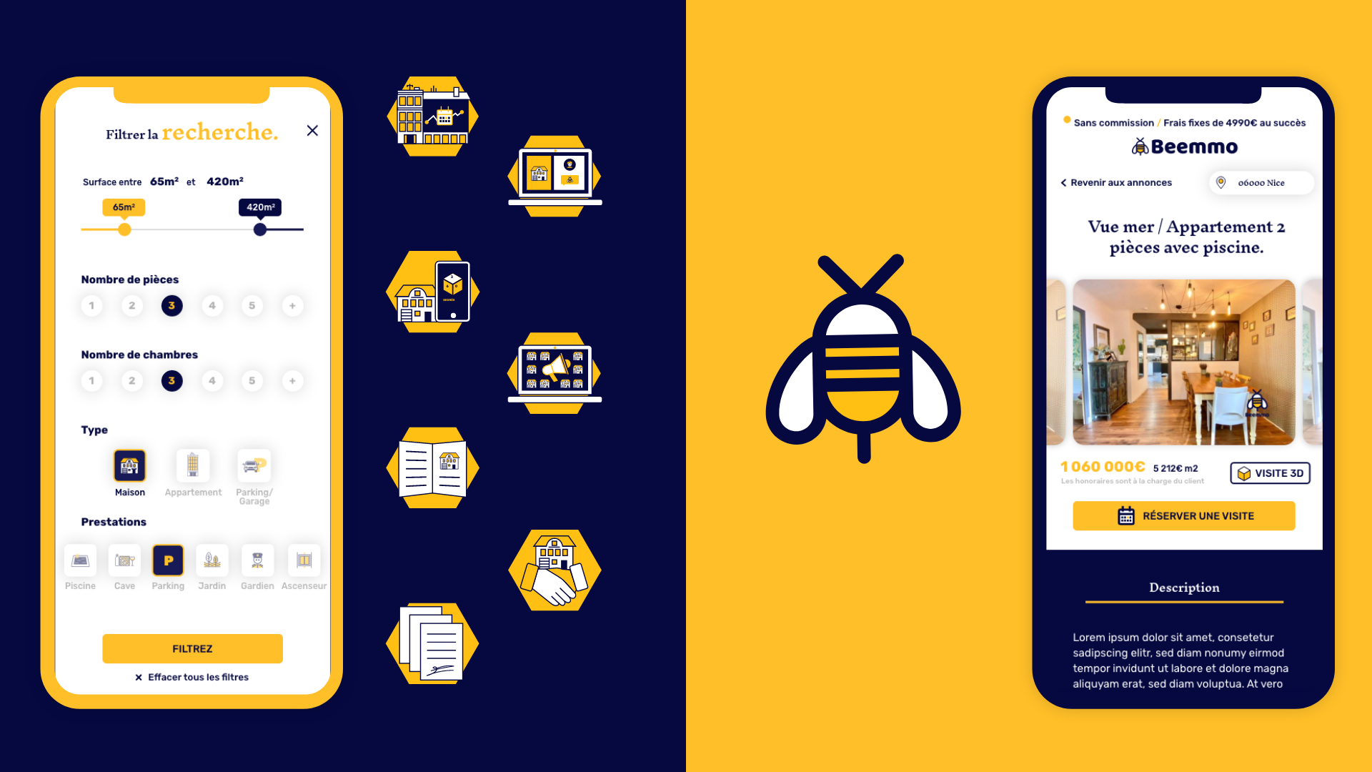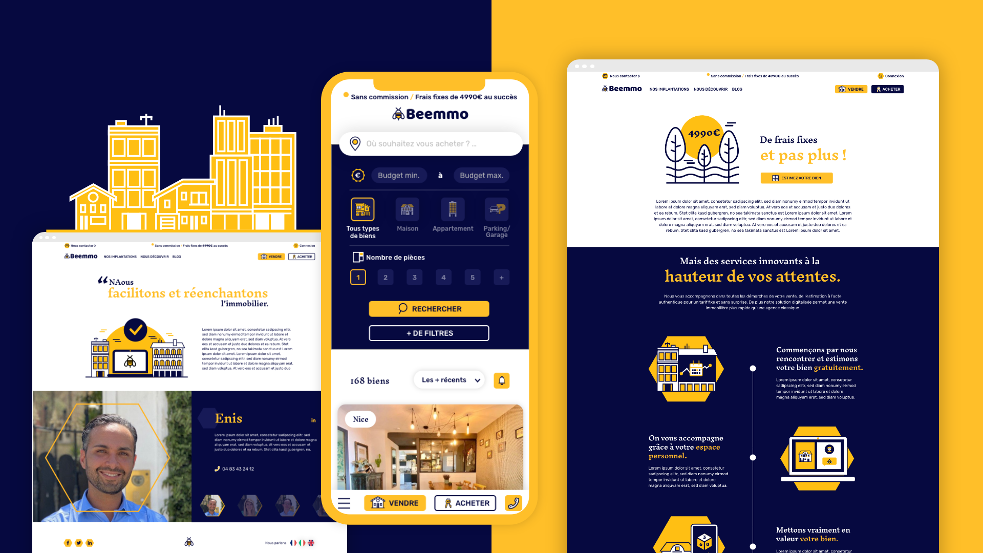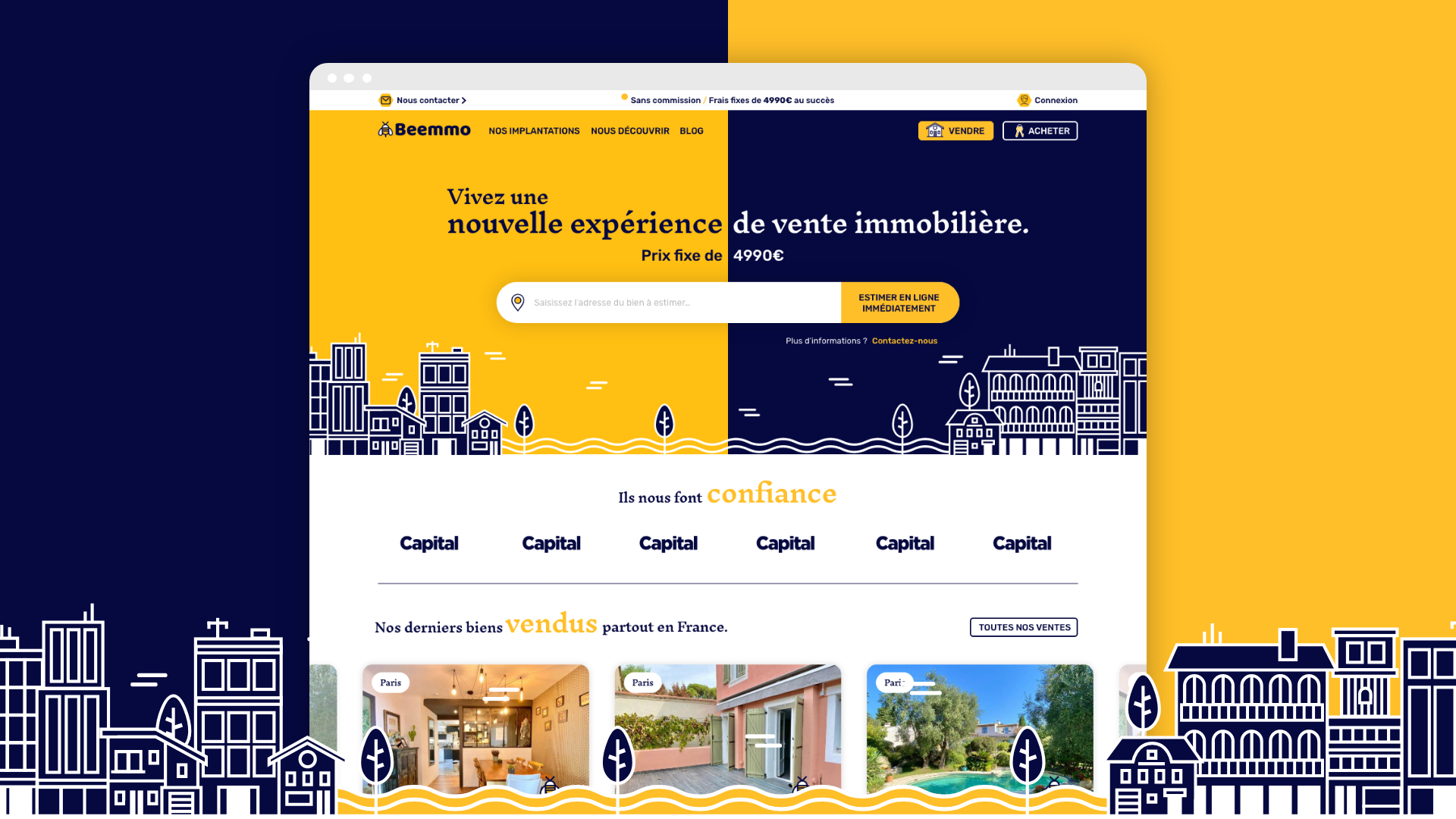 La solution immobilière nouvelle génération Beemmo a fait appel à l'agence Bridgers pour repenser son site web. J'ai participé avec eux sur ce projet pour réaliser l'UX et l'UI design du projet. L'idée a été d'installer une nouvelle charte graphique digitale forte, cassant les codes classiques du monde immobilier en jouant un univers illustré fort et singulier.
