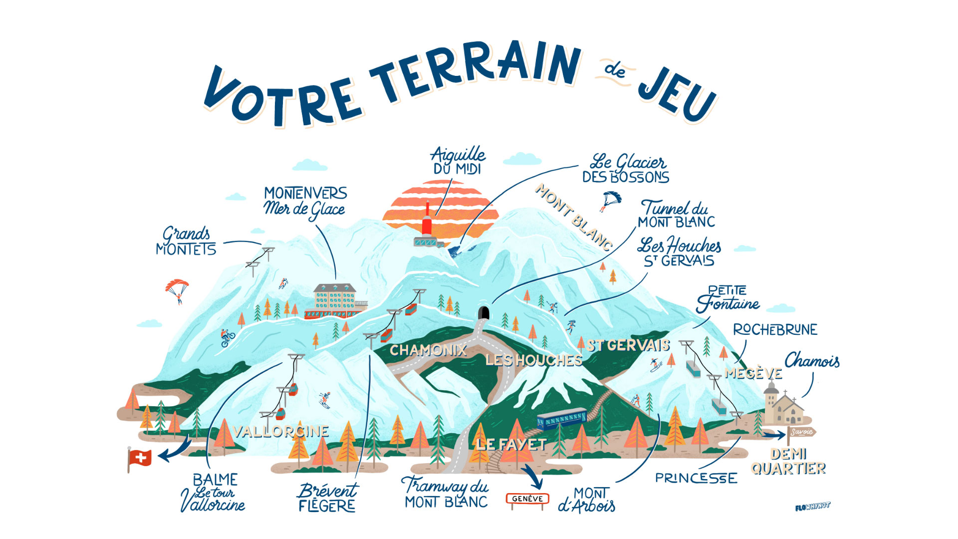 La magazine Moka Mag m'a demandé de réaliser une carte de la Vallée de Chamonix afin d'illustrer un sujet sur les activités proposé par Mont-Blanc Natural Resort.