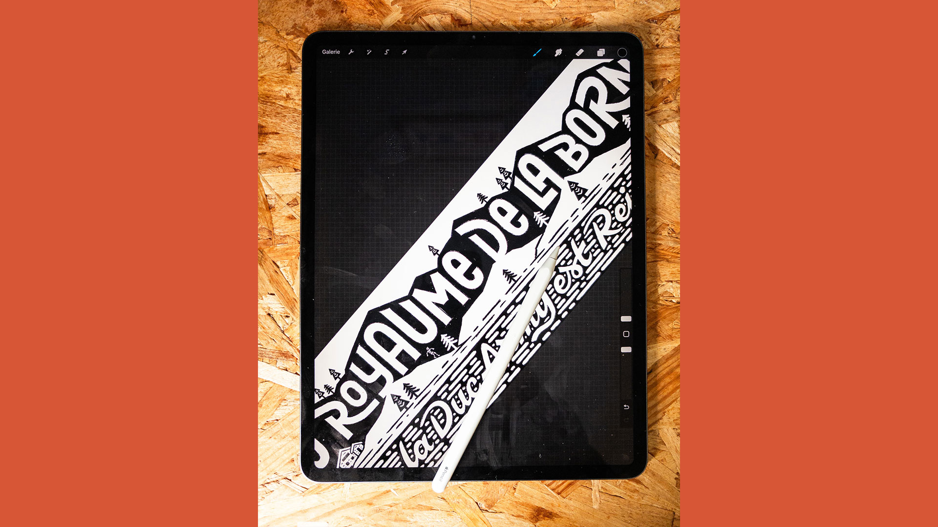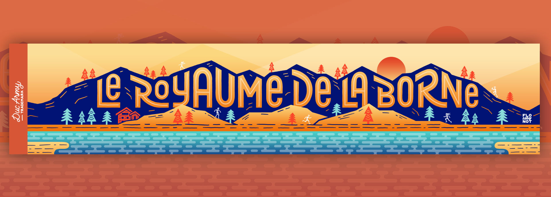 Duc Army, la marque de l'ultra traileur Ugo Ferrari, m'a demandé de dessiner un bandeau à l'inspiration "paysage". Nous avons décidé de la nommer "le Royaume de la Borne" en rapport avec le sport à l'origine de la firme.