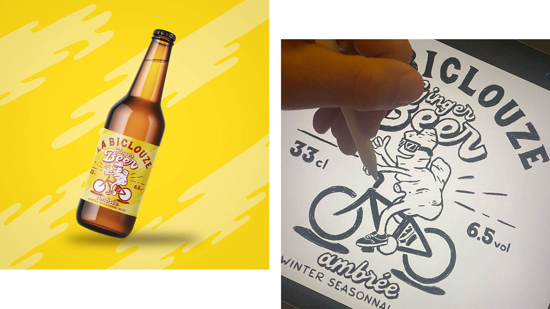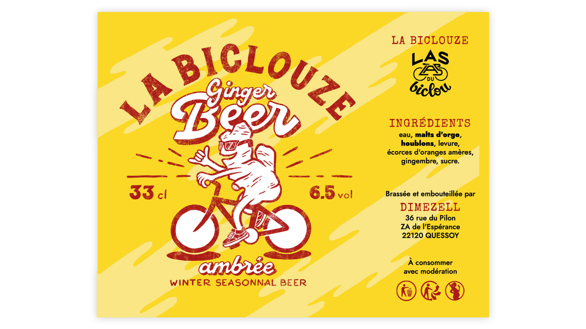 Le shop outdoor LAS du Biclou m'a fait confiance afin de dessiner l'étiquette de sa nouvelle bière La Biclouze : une ginger beer. L'idée a été de représenter un personnage sympathique représentant la convivialité en lui donnant tout simplement la forme du gingembre et enfourchant un vélo, produit phare du magasin.