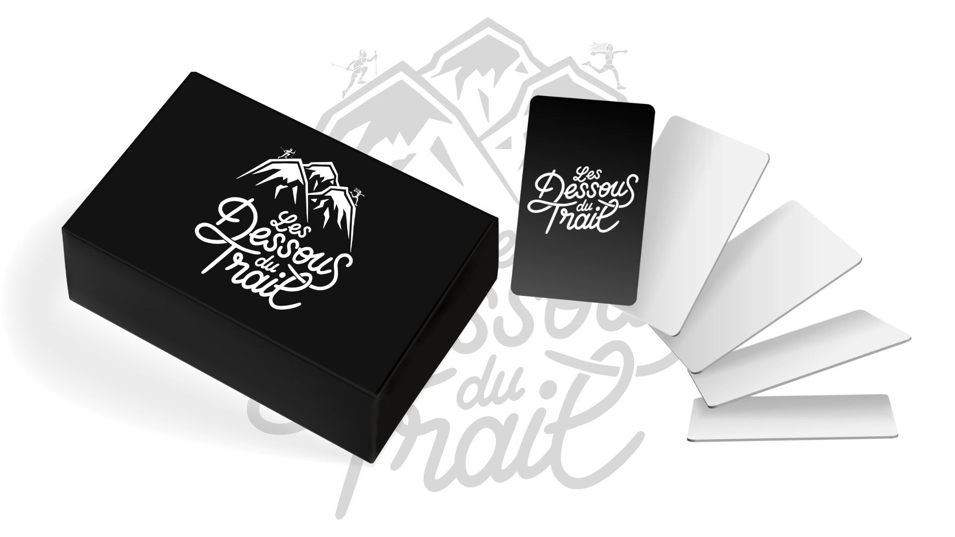 Le jeu de cartes sur l'univers du trail "Les Dessous du Trail" m'a commandé son identité visuelle afin d'habiller le packaging et les éléments du jeu.