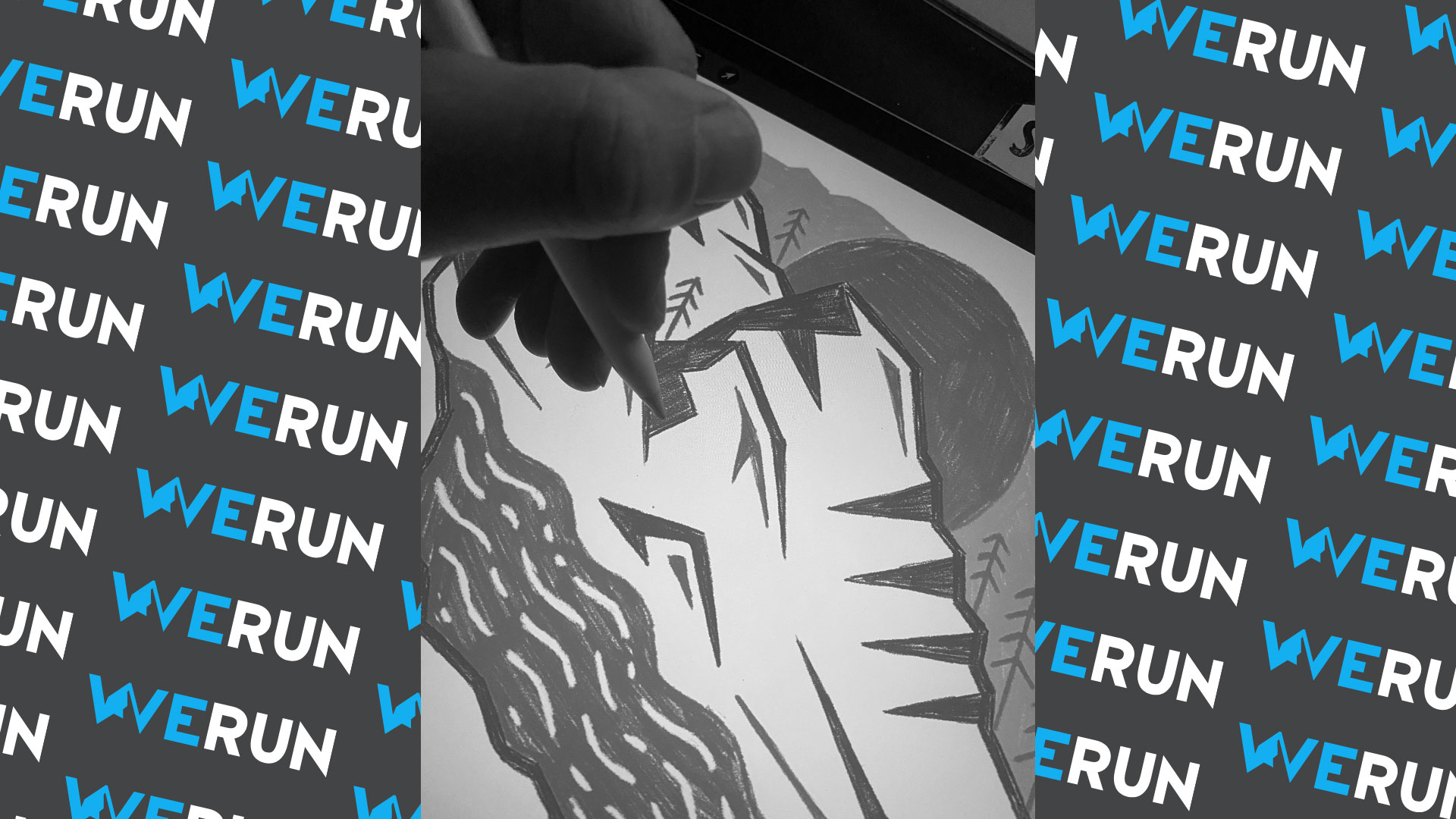 Le célèbre site WeRun, anciennement Trail PEI, m'a demandé de l'aider dans son choix stratégique de changement de nom afin de lui créer son nouveau logo. L'idée a été de dessiner un logotype singulier représentant le running, l’outdoor tout en faisant un clin d’oeil à La Réunion mais sans qu’il soit trop présent puisque l’objectif est de dépasser ses frontières d'origine. C’est ainsi que j’ai juste pris le tour de l’île pour avoir une forme brute, non parfaite symbolisant bien l’inconnu que l’on peut rencontrer lors la notre pratique du trail. Dessus j’y ai mixé une chaussure et les montagnes qui viennent se poser entre la mer et le soleil pour montrer que la course à pied peut s’effectuer partout.