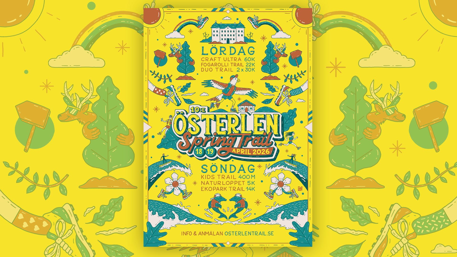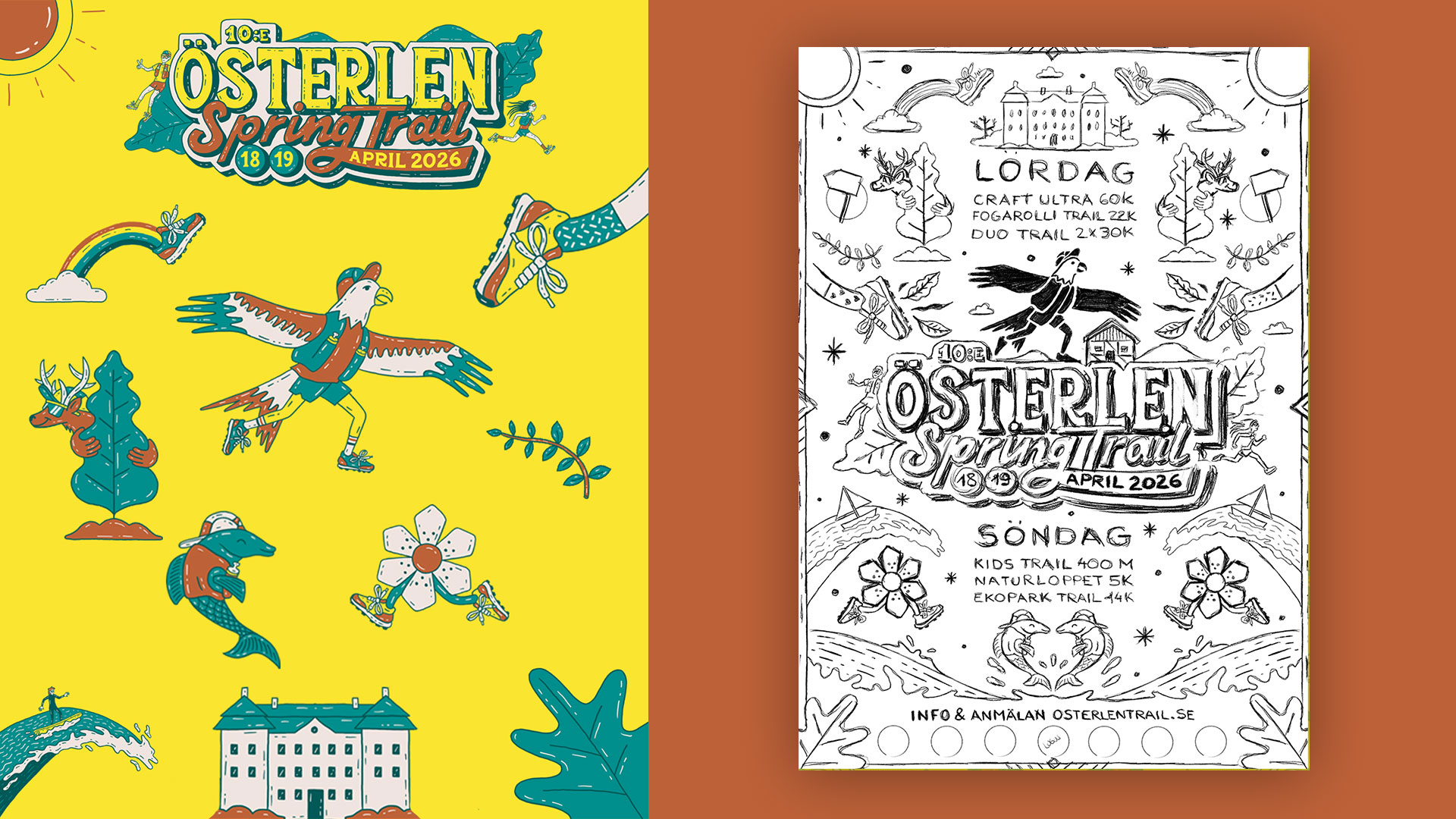 Après avoir réalisé sa refonte d'identité visuelle en 2024 ainsi que le maillot de l'édition de cette même année, l'Österlen Spring Trail m'a de nouveau fait confiance afin de créer son affiche 2026. Nous sommes partis dans une dynamique "festival" collant bien à l'ambiance de l'évènement.