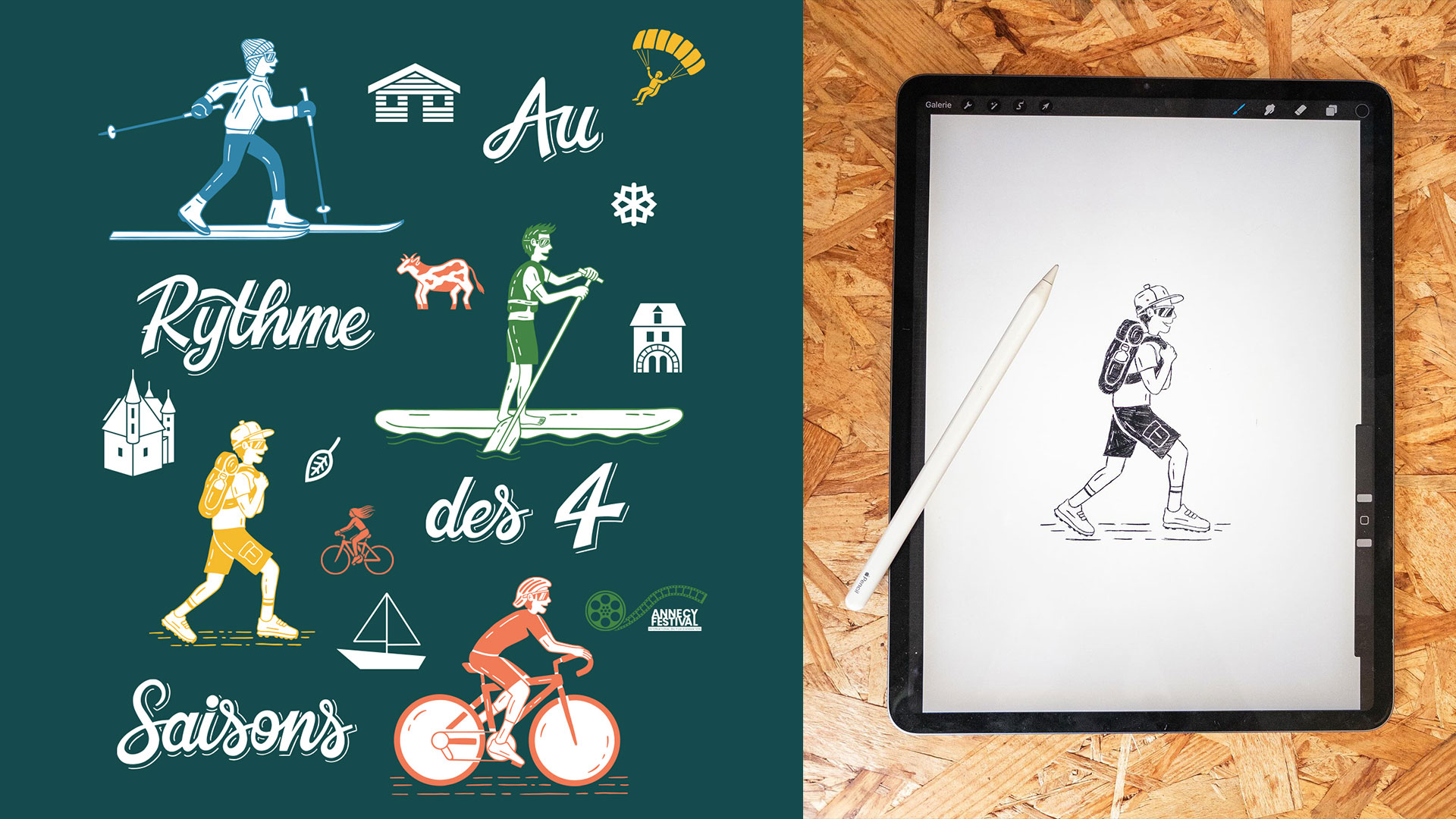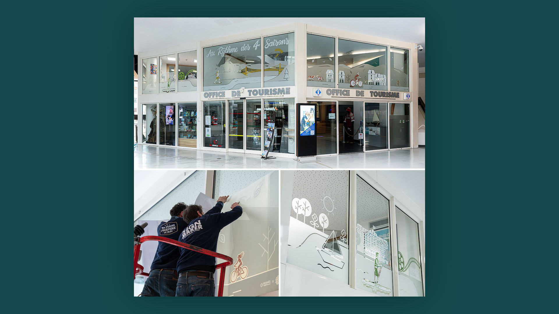 L'agence outdoor Peignée Verticale m'a demandé de dessiner la nouvelle vitrophanie qui habille l'office du tourisme d'Annecy.
