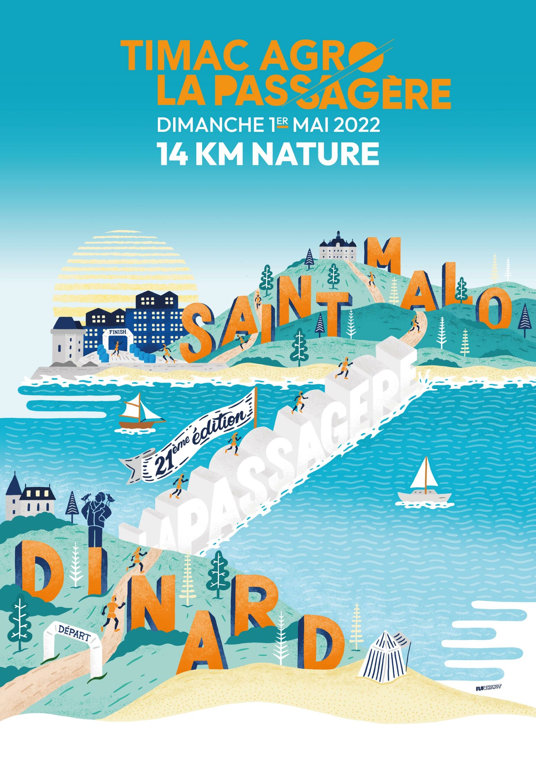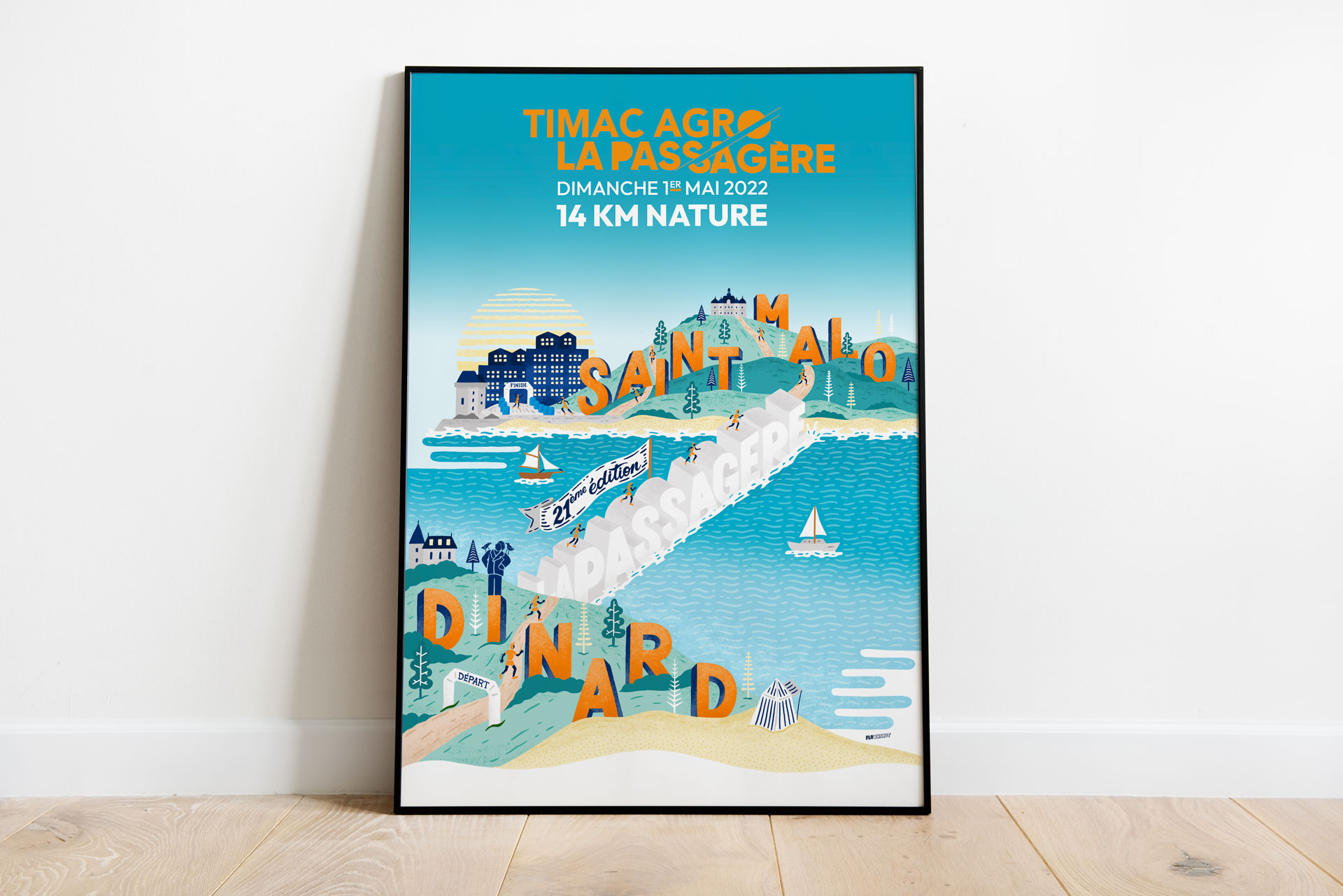 La course mythique de la Côte d'Émeraude la Timac Agro La Passagère m'a demandé de dessiner l'affiche de la 21ème édition. L’idée a été de représenter l’esprit de l'épreuve et sa célèbre traversée du barrage de la Rance, tout en symbolisant également les lieux emblématiques qui seront traversés par les coureurs.